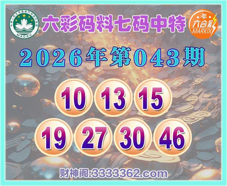 043期:〖六彩码料〗 🏅七码中特🏅【10.13.15.19.27.30.46】开:13