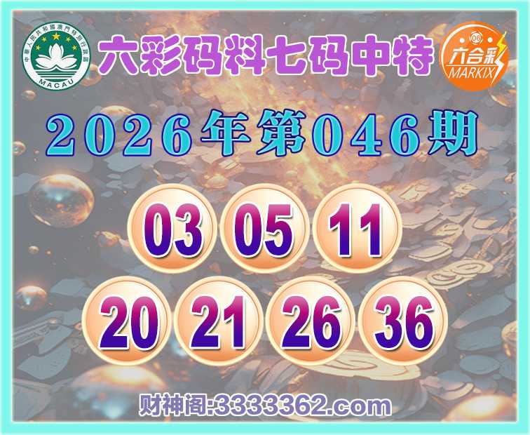 046期:〖六彩码料〗 🏅七码中特🏅【03.05.11.20.21.26.36】开:03