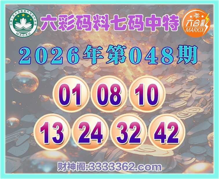 048期:〖六彩码料〗 🏅七码中特🏅【01.08.10.13.24.32.42】开:24