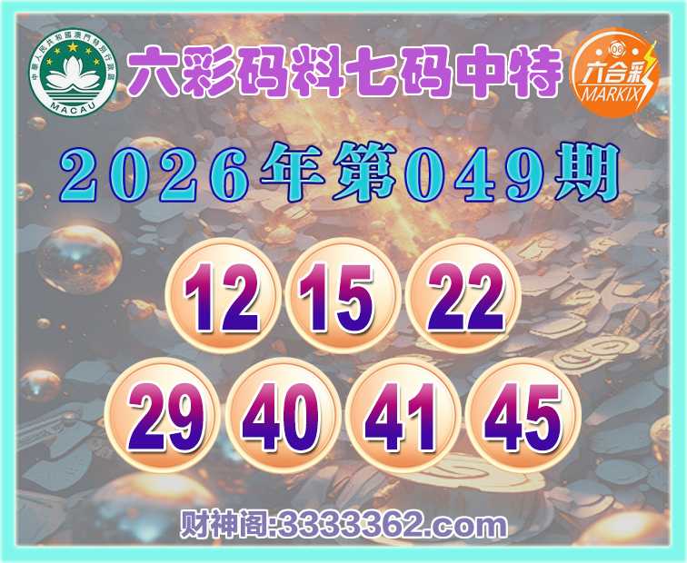 049期:〖六彩码料〗 🏅七码中特🏅【12.15.22.29.40.41.45】开:00准