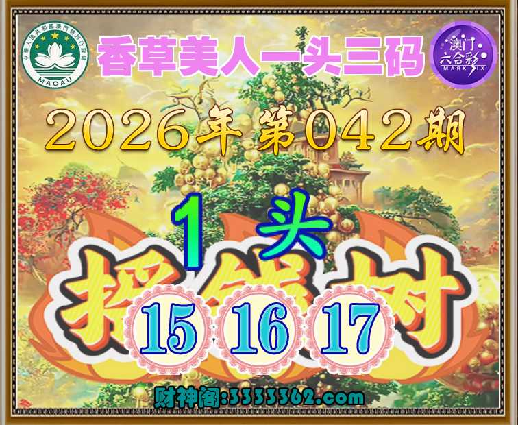 042期:《香草美人》 🏅一头三码🏅【1头主:15.16.17】开:虎16