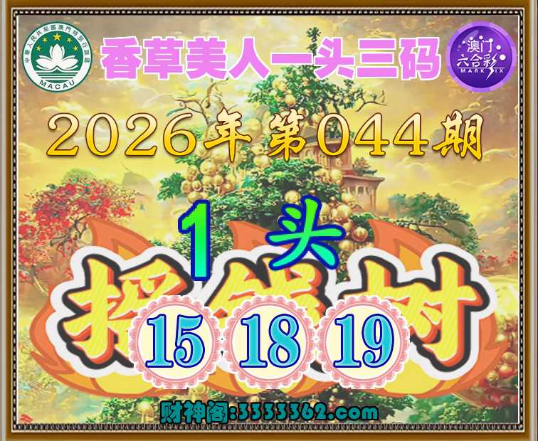 044期:《香草美人》 🏅一头三码🏅【1头主:15.18.19】开:猪19