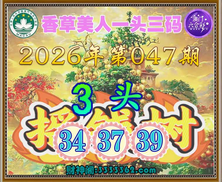 047期:《香草美人》 🏅一头三码🏅【3头主:34.37.39】开:兔39