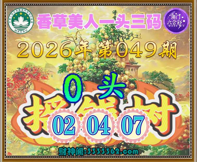 049期:《香草美人》 🏅一头三码🏅【0头主:02.04.07】开:00准
