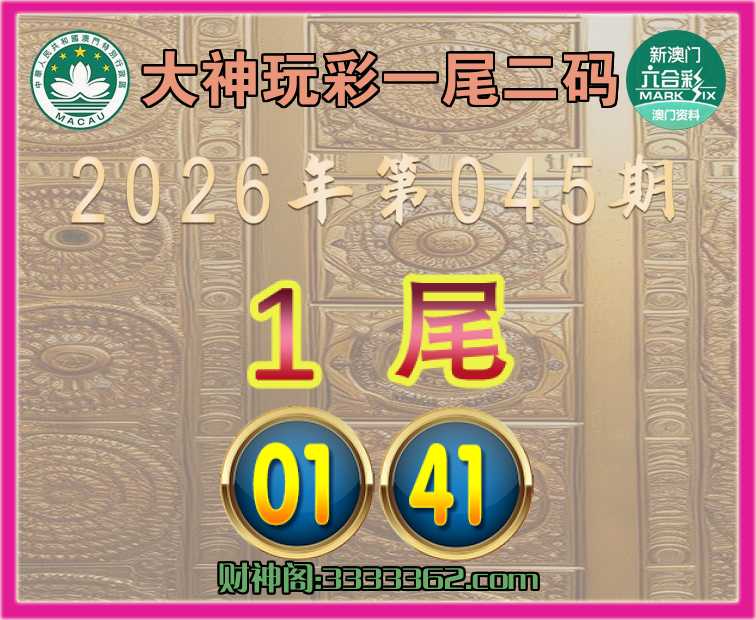045期: 大神玩彩 🏃‍♀️一尾二码🏃‍♀️【1尾主:01.41】开:01