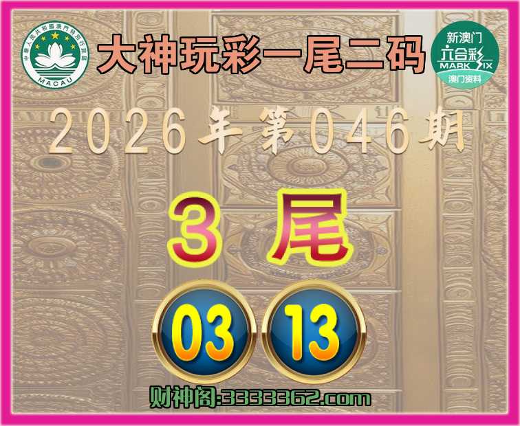 046期: 大神玩彩 🏃‍♀️一尾二码🏃‍♀️【3尾主:03.13】开:03