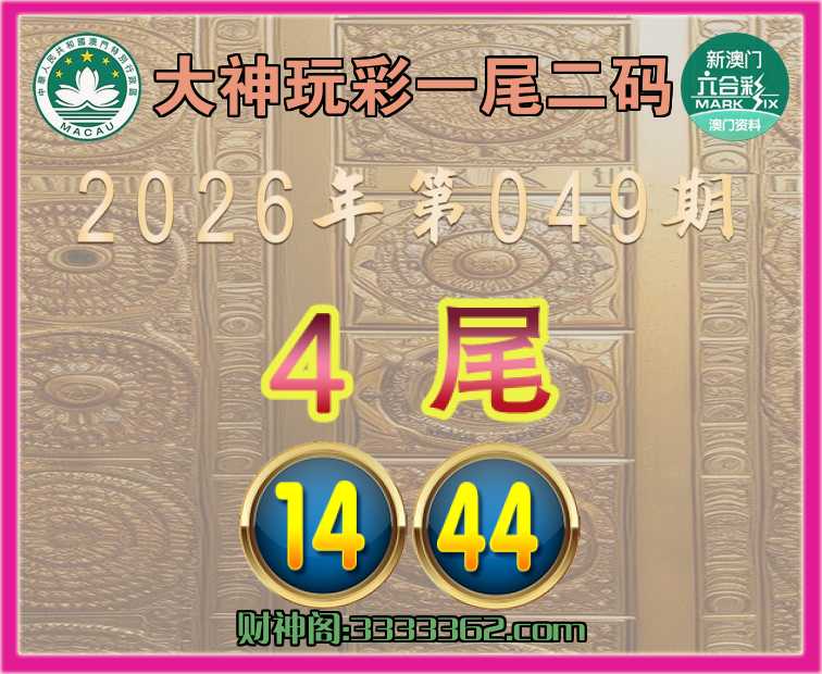 049期: 大神玩彩 🏃‍♀️一尾二码🏃‍♀️【4尾主:14.44】开:00准