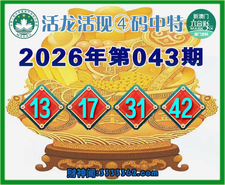043期:【活龙活现】 👑④码中特👑【13.17.31.42】开:13