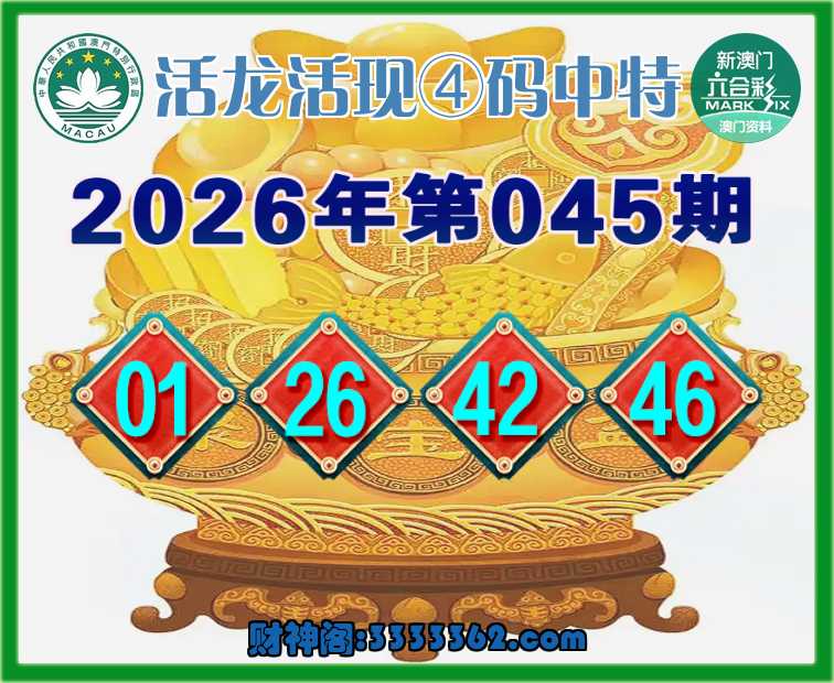 045期:【活龙活现】 👑④码中特👑【01.26.42.46】开:01