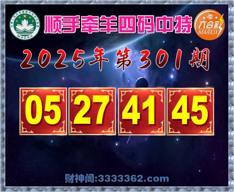 301期:〖顺手牵羊〗 🏆四码中特🏆【05.27.41.45】开:05