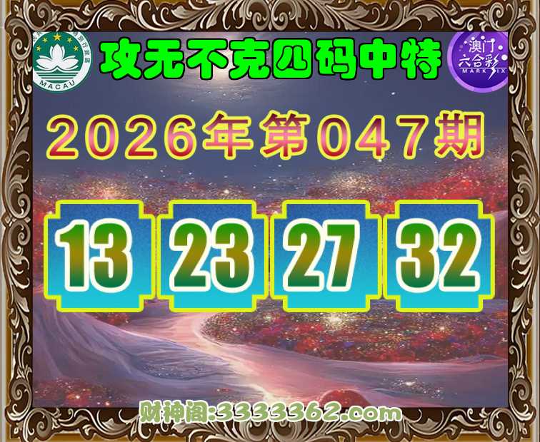 047期:『攻无不克』 🧦四码中特🧦【13.23.27.32】开:00准