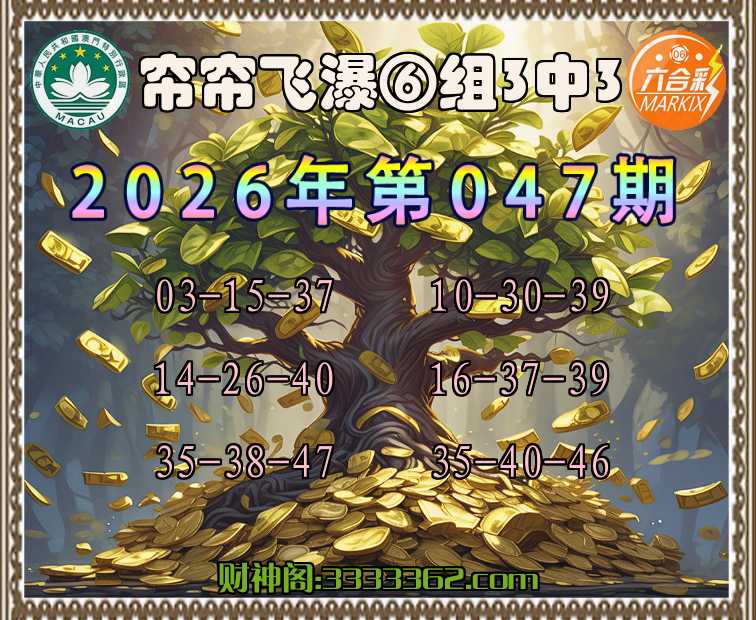 047期:『帘帘飞瀑』 🥫⑥组3中3🥫