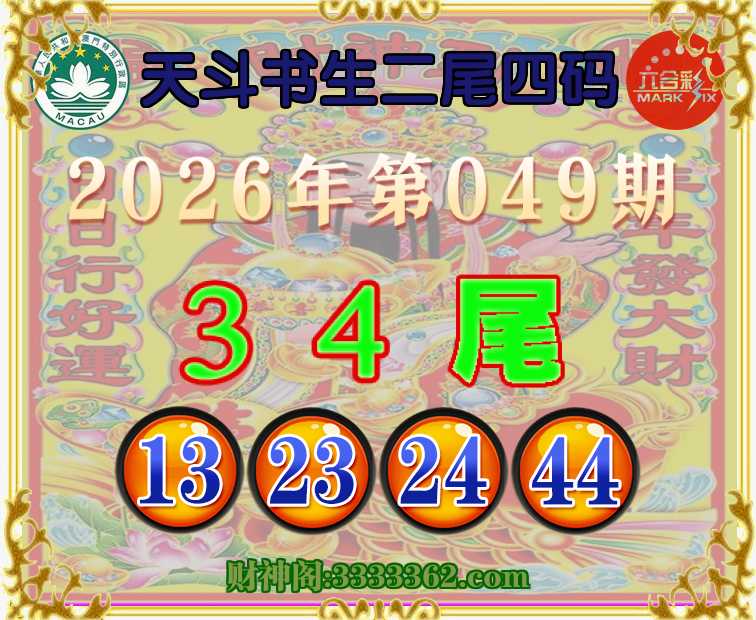 049期:『天斗书生』 🥽二尾四码🥽【34尾主:13.23.24.44】开:13
