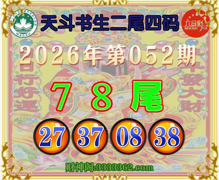 052期:『天斗书生』 🥽二尾四码🥽【78尾主:27.37.08.38】开:38