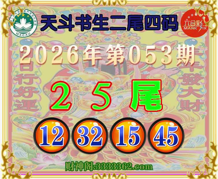 053期:『天斗书生』 🥽二尾四码🥽【25尾主:12.32.15.45】开:15