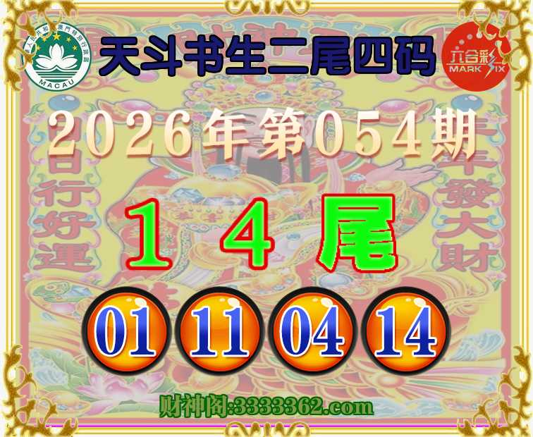 054期:『天斗书生』 🥽二尾四码🥽【14尾主:01.11.04.14】开:00准