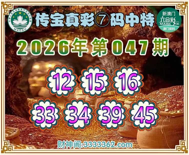 047期:《传宝真彩》 ✂️⑦码中特✂️【12.15.16.33.34.39.45】开:39