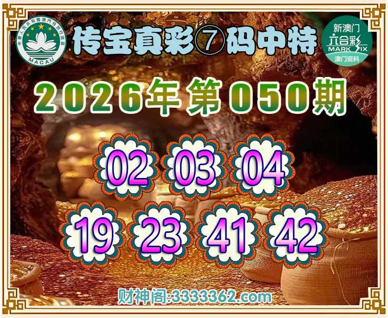 050期:《传宝真彩》 ✂️⑦码中特✂️【02.03.04.19.23.41.42】开:23