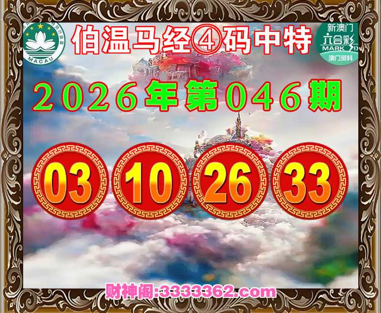 046期:《伯温马经》 🧤④码中特🧤【03.10.26.33】开:03