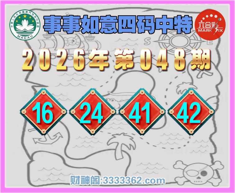 048期:〖事事如意〗 🥽四码中特🥽【16.24.41.42】开:24