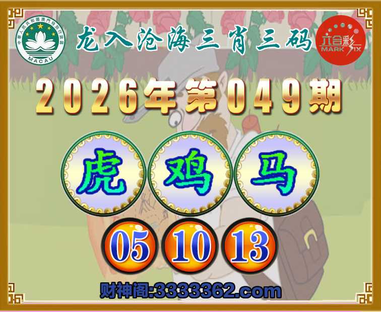 049期:〖龙入沧海〗 🥉三肖三码🥉【虎鸡】【05.10.13】开:马13