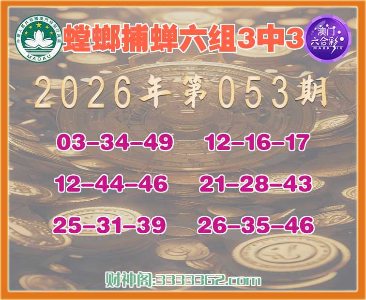 047期: 🍁『螳螂捕蝉』 🍁六组3中3🍁