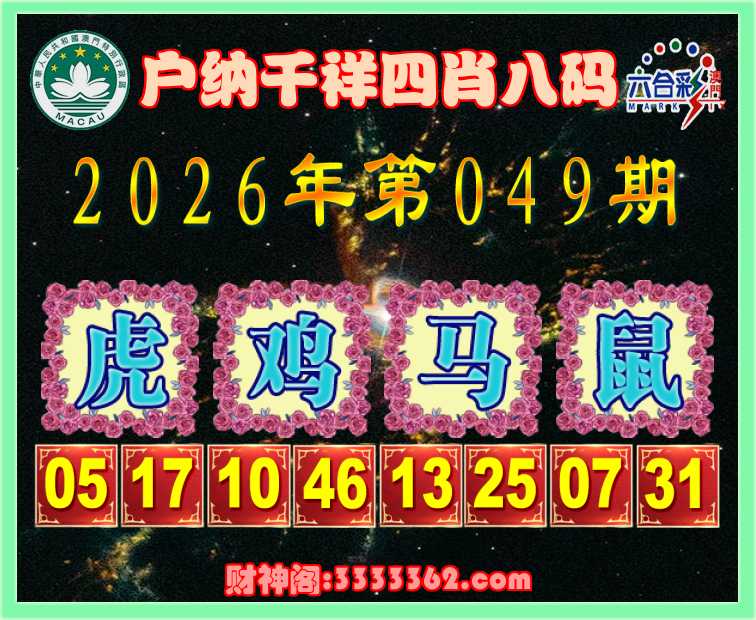 049期:《户纳千祥》 🏇四肖八码🏇【虎鸡鼠】开:马13