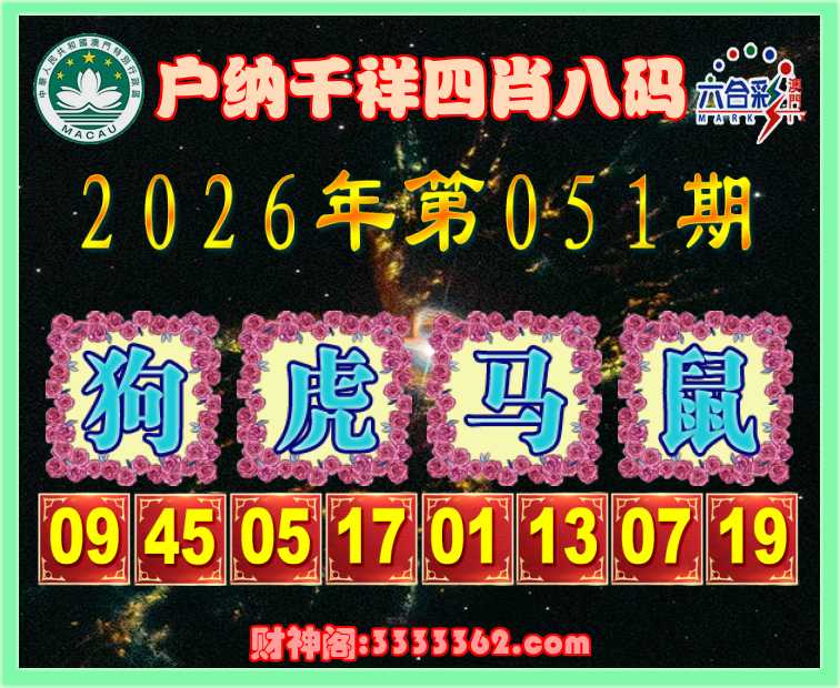 051期:《户纳千祥》 🏇四肖八码🏇【狗虎鼠】开:马01