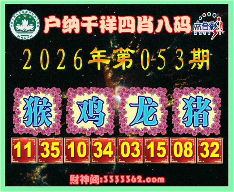 053期:《户纳千祥》 🏇四肖八码🏇【猴鸡猪】开:龙15