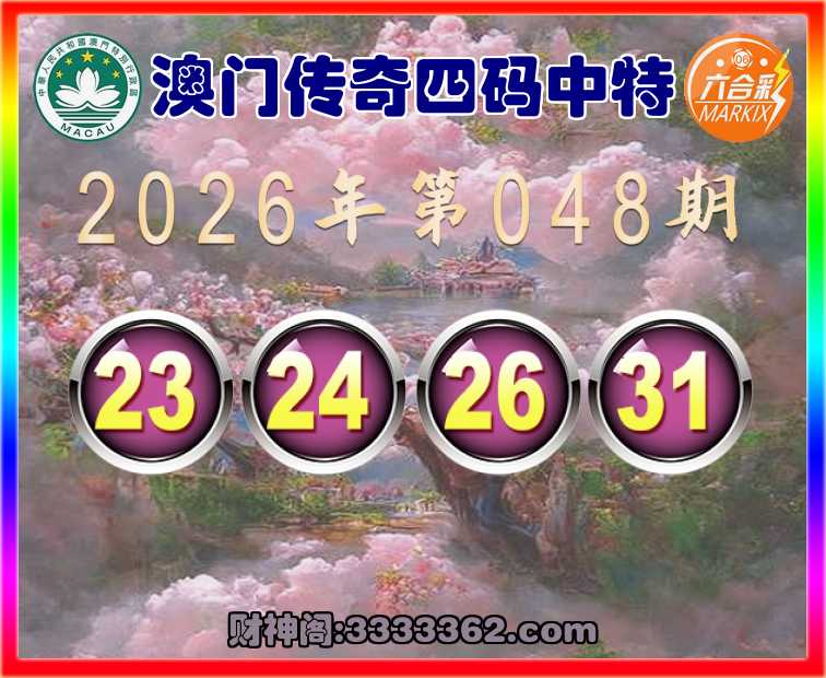 048期:【澳门传奇】 🥽四码中特🥽【23.24.26.31】开:24