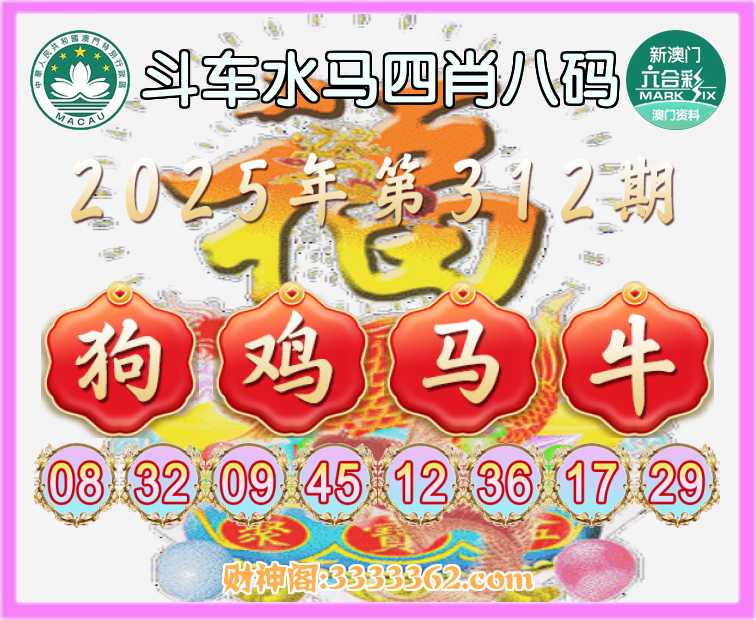 312期:【斗车水马】 🧏‍♀️四肖八码🧏‍♀️【狗鸡马牛】开:00准